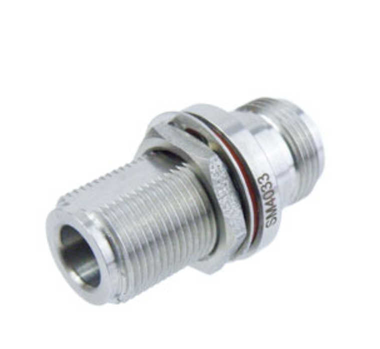Адаптер переборки с внутренней резьбой N (гнездо) на внутреннюю резьбу N (гнездо), корпус из пассивированной нержавеющей стали, КСВ 1,3
