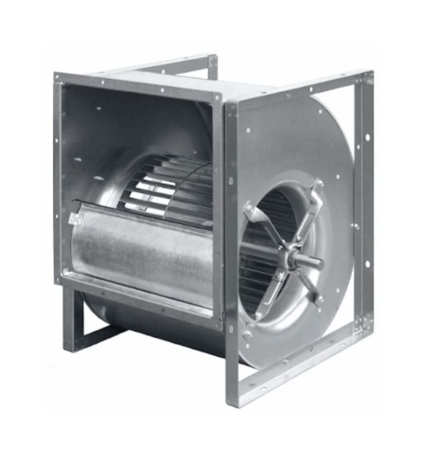 Рабочее колесо радиального вентилятора двухстороннего всасывания с вперед загнутыми лопастями изготовлено из высококачественной листовой стали горячего цинкования. Усовершенствованный аэродинамический профиль позволяет достигать наивысшую эффективность и минимальный уровень шума. Рабочее колесо закреплено на средней дисковой пластине и на торцевом кольце с помощью клепальных захватов. Колесо изготовлено с высоким запасом прочности, оно выдерживает длительную эксплуатацию с максимальной мощностью, и ничем не уступает такому известному производителю, как comefri. Все рабочие колеса прошли балансировку.