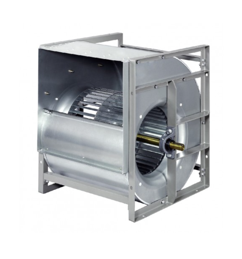 Рабочее колесо радиального вентилятора двухстороннего всасывания с вперед загнутыми лопастями изготовлено из высококачественной листовой стали горячего цинкования. Усовершенствованный аэродинамический профиль позволяет достигать наивысшую эффективность и минимальный уровень шума. Рабочее колесо закреплено на средней дисковой пластине и на торцевом кольце с помощью клепальных захватов. Колесо изготовлено с высоким запасом прочности, оно выдерживает длительную эксплуатацию с максимальной мощностью, и ничем не уступает такому известному производителю, как comefri. Все рабочие колеса прошли балансировку.