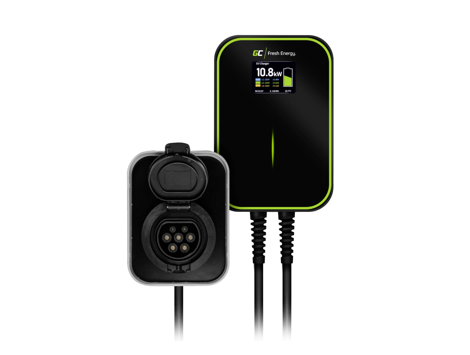 GC EV PowerBox — это зарядное устройство для самых требовательных пользователей электромобилей. ЖК-экран с доступом к основным параметрам, встроенный кабель Type 2 (6 м), минималистичный дизайн и исключительная надежность Не теряйте время зря. С зарядным устройством GC EV PowerBox можно заряжать мощностью до 22 кВт — максимально возможное значение для зарядки переменным током. Это экономит вам до нескольких часов! Мы оснастили зарядное устройство передовой электроникой, которая постоянно контролирует параметры зарядки вашего автомобиля. Кроме того, алюминиевый корпус чрезвычайно прочный, герметичный и водонепроницаемый по стандарту IP66. Встроенный кабель совместим со всеми электромобилями и подключаемыми гибридами, которые оснащены вилкой типа 2. Tesla Model 3 / Model S, BMW i3, VW ID.3, Audi E-Tron, Nissan Leaf, Peugeot e-208, Renault ZOE, Hyundai Kona