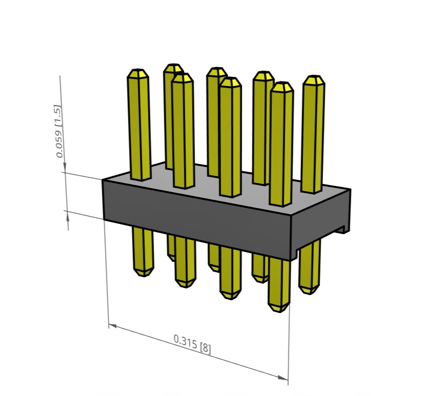 - Система контактов: квадратный столбик .020 "(0,50 мм)