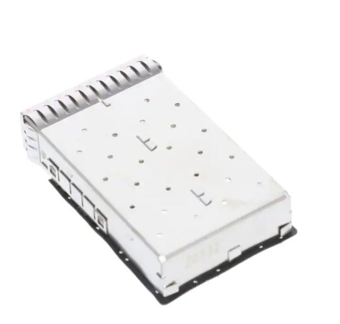Располагает разъем zSFP+, совмещенный с клеткой (1 x 2), с запрессовкой через отверстие под прямым углом