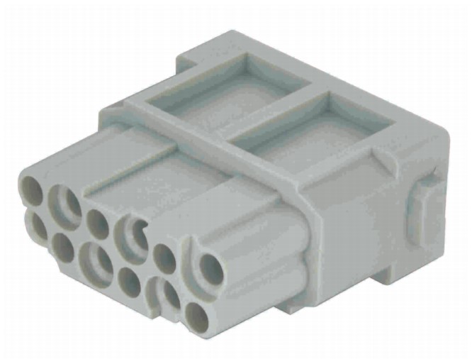 Модуль Han DD ®, Подключение обжимом, Розетка, Контакты: 12, Поперечное сечение проводника: 0.14 ... 2.5 mm², Номинальный ток: ‌10 A, Поликарбонат (PC), RAL 7032 (серый)