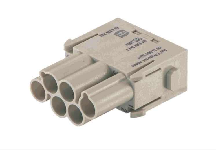 Модуль с защитой Han E®, Подключение обжимом, Вилка, Контакты: 6, Поперечное сечение проводника: 0.14 ... 4 mm², Номинальный ток: 16 A, Поликарбонат (PC), RAL 7032 (серый)