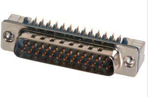 D Sub male 25p low profile PL1 with die casted grounding and non removable 4-40 UNC female screw lock.