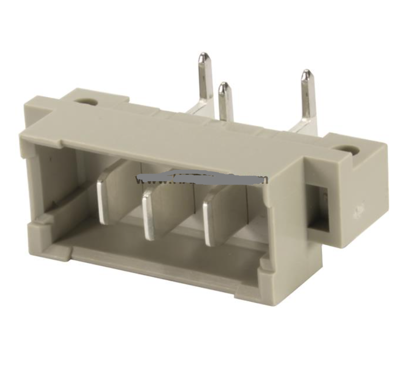 Соединители, Вилка, Подключение методом пайки волной припоя, Номинальный ток: 15 A, Контакты: 3, Угловой, Медный сплав, Посеребренные, Сторона соединения, Sn поверх Ni, Сторона подключения, Уровень исполнения: 1, В соответствии с IEC 60603-2, Крепление печатной платы: С крепежным фланцем, Термопластичная смола, армированная стекловолокном, RAL 7032 (серый)