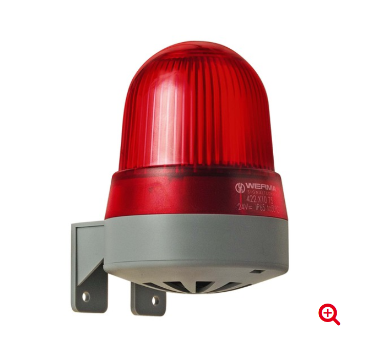 Механические данные Высота 121 мм Диаметр 83 мм Материалы ПК Цвет купола Красный Цвет корпуса Серый Категория защиты IP65 Связь Винтовые клеммы площадь поперечного сечения максимальная 1,50 мм² / 16AWG Кабельный ввод Мембранная втулка Кабельный ввод минимум d = 1 мм Максимальный кабельный ввод д = 9 мм Снятие напряжения Защита от вытягивания Тип крепления настенное крепление Минимальная рабочая температура -20°С Максимальная рабочая температура +50°С Вес с упаковкой 173 г Вес товаров 142 г Электрические данные Рабочее напряжение 24В Тип рабочего напряжения ПЕРЕМЕННЫЙ ТОК Частота рабочего напряжения 50 Гц Допуск рабочего напряжения +/- 10% Номинальное рабочее напряжение 24 В постоянного тока Номинальный рабочий ток 120 мА Номинальный пусковой ток 120 мА Класс защиты Класс защиты 2 Степень загрязнения 3 Оптические данные Источник света ксенон Светлый цвет Красный Изображение оптического сигнала Вспышка Частота вспышки 1 Гц Мощность вспышки 1 Дж Срок службы оптический Минимум 4 миллиона вспышек Акустические данные Громкость (макс.) на расстоянии 1 м 92,0 дБ (А) Изображение акустического сигнала Непрерывный тон
