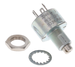 TypeDescriptionCategoryPotentiometers, Variable ResistorsRotary Potentiometers, RheostatsManufacturerVishay SferniceSeriesPE30PackagingBoxPart StatusActiveResistance (Ohms)10kTolerance±10%Power (Watts)3WBuilt in SwitchNoneNumber of Turns1.0Features-TaperLinearNumber of Gangs1Adjustment TypeUser DefinedTemperature Coefficient±150ppm/°CRotation300°Resistive MaterialCermetTermination StyleSolder LugActuator TypeSlottedActuator Length0.630" (16.00mm)Actuator Diameter0.236" (6.00mm)Bushing ThreadM10 x 0.75Mounting TypePanel MountSize - BodyRound - 0.776" Dia (19.70mm)Environmental & Export ClassificationsAttribute Description RoHS Status ROHS3 Compliant Moisture Sensitivity Level (MSL) Not Applicable REACH Status REACH Unaffected ECCN EAR99 HTSUS 8533.40.8050 - Аксессуары и аналоги