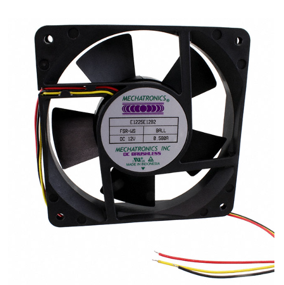 CategoryFans, Thermal ManagementFansDC Brushless Fans (BLDC)MfrMechatronics Fan GroupSeriesE1225PackageBulkProduct StatusVoltage - Rated12VDCSize / DimensionSquare - 120mm L x 120mm HWidth25.00mmAir Flow93.0 CFM (2.60m³/min)Static Pressure0.280 in H2O (69.7 Pa)Bearing TypeBallFan TypeTubeaxialFeaturesLocked Rotor Sensor, Thermal Overload Protector (TOP)Noise44.0dB(A)RPM3000 RPMTermination3 Wire LeadsIngress Protection-Operating Temperature-Approval AgencyCE, cUL, TUV, ULWeight0.436 lb (197.77 g)Current Rating (Amps)0.580AVoltage Range-Material - FramePolybutylene Terephthalate (PBT)Material - BladePolybutylene Terephthalate (PBT)Lifetime @ Temp.-Base Product NumberE1225Environmental & Export ClassificationsATTRIBUTE DESCRIPTION RoHS Status ROHS3 Compliant Moisture Sensitivity Level (MSL) Not Applicable ECCN EAR99 HTSUS 8414.59.6590 - Аксессуары и аналоги