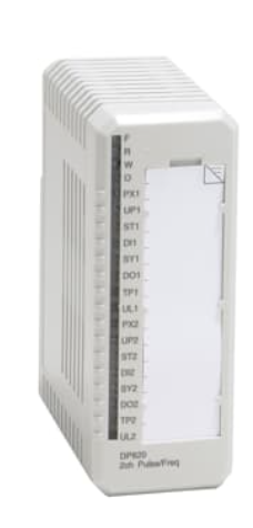DP820 — двухканальный модуль счета импульсов для инкрементальных передатчиков импульсов с частотой до 1,5 МГц. Каждый канал содержит счетчики и регистры для измерения положения/длины и скорости/частоты. Каждый канал имеет три балансных входа для подключения передатчика импульсов, один цифровой вход и один цифровой выход. К DP820 можно подключить передатчики импульсов с интерфейсами RS422, +5 В, +12 В, +24 В и 13 мА.