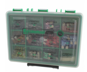 TypeDescriptionCategoryKitsCircuit Protection Kits - FuseManufacturerLittelfuse Inc.Series214, 217, 311, ATO® 257, SFE 307PackagingCaseKit TypeAutomotiveResponse TimeFast Blow, Slow BlowVoltage Rating32VDC, 36VDCCurrent Rating (Amps)2 ~ 30AQuantity100 Pieces (Assorted Per Value)IncludesFuse PullerMounting TypeHolderPackages Included3AB, 3AG, 1/4" x 1-1/4", Blade, ATO/ATC, CartridgeEnvironmental & Export ClassificationsAttribute Description RoHS Status ROHS3 Compliant Moisture Sensitivity Level (MSL) 1 (Unlimited) REACH Status REACH Unaffected ECCN EAR99 HTSUS 8536.10.0040 - Аксессуары и аналоги
