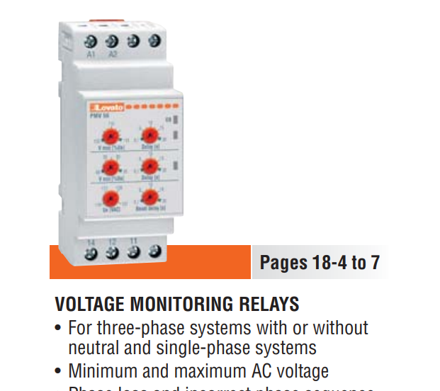 ManufacturerLOVATO ELECTRIC Type of modulevoltage monitoring relay