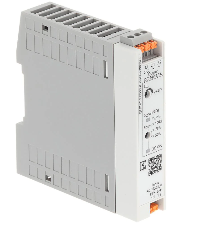 TypeDescriptionCategoryPower Supplies - External/Internal (Off-Board)Industrial, DIN Rail Power SuppliesManufacturerPhoenix ContactSeriesQuintPackagingBulkPart StatusActiveInput TypeAC or DCNumber of Outputs1AC Voltage - Input100 ~ 240 VACDC Voltage - Input (Min)110VDC Voltage - Input (Max)250VVoltage - Output 124VVoltage - Output 2-Voltage - Output 3-Voltage - Output 4-Voltage - Output 5-Voltage - Output 6-Current - Output (Max)1.3APower (Watts)31WVoltage - Isolation4 kVApplicationsITE (Commercial), LaboratoryEfficiency90.7%Operating Temperature-25°C ~ 70°C (With Derating)FeaturesAdjustable Output, IP20, PFC, Universal InputSize / Dimension3.54" L x 0.89" W x 4.17" H (90.0mm x 22.5mm x 106.0mm)Approval AgencyCB, CE, ULMinimum Load Required-Environmental & Export ClassificationsAttribute Description RoHS Status ROHS3 Compliant Moisture Sensitivity Level (MSL) Not Applicable REACH Status REACH Affected ECCN EAR99 HTSUS 8504.40.9510 - Аксессуары и аналоги