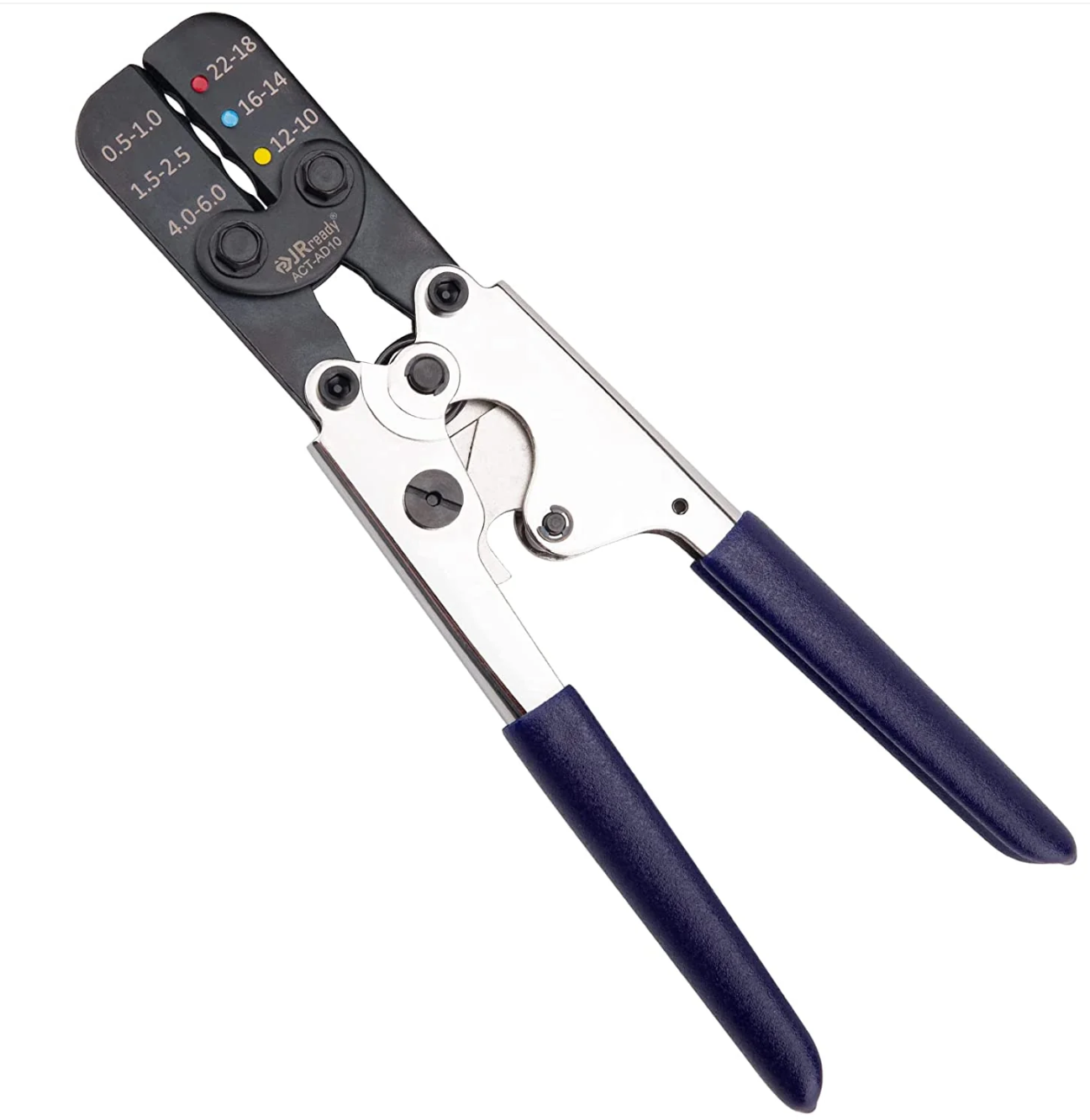 JRready ACT-AD10 Обжимной инструмент с храповым механизмом для термоусадочных соединителей, изолированных клемм и стыковых соединений проводов 22-18, 16-14, 12-10AWG
