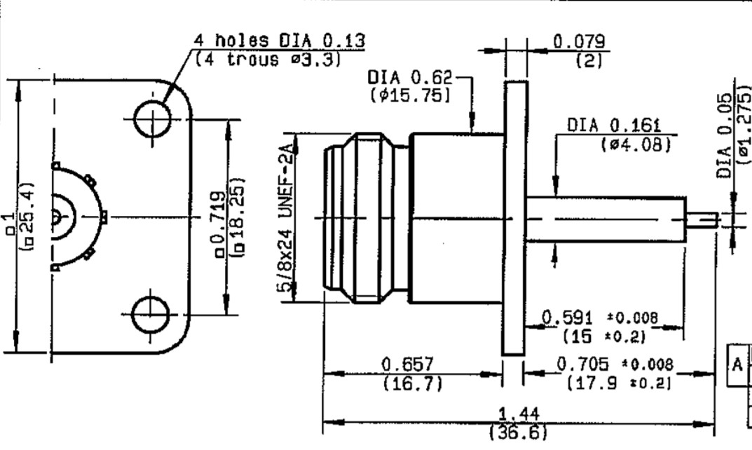 N / SQUARE FLANGE JACK RECEPTACLE WITH CYLINDRICAL контакт .