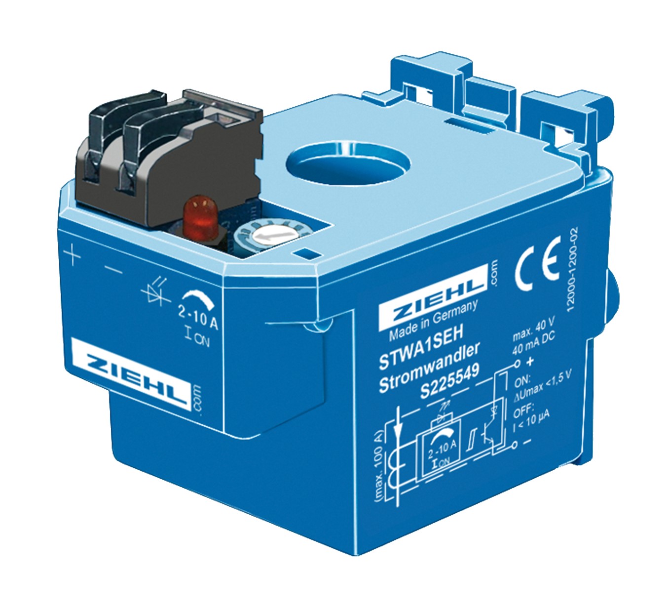 STWA1SEH имеет встроенную электронику с транзисторным выходом. Предел регулируется 2 - 10 А с помощью потенциометра. Светодиод отображает состояние.