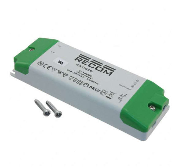 CategoryPower Supplies - External/Internal (Off-Board)LED DriversMfrRecom PowerSeriesLIGHTLINE RACD20 (20W)PackageBoxTypeConstant CurrentTopologyAC DC ConverterNumber of Outputs1Voltage - Input (Min)90VACVoltage - Input (Max)264VACVoltage - Output5 ~ 17VCurrent - Output (Max)1.05APower (Watts)20 WVoltage - Isolation3 kVDimming-FeaturesOCP, OTP, OVP, SCPRatingsIP20Operating Temperature-20°C ~ 50°CEfficiency83%Termination StyleTerminal BlockSize / Dimension5.71" L x 1.97" W x 0.87" H (145.0mm x 50.0mm x 22.0mm)Approval AgencyCE, cULus, SEMKOMounting TypeChassis MountWeight0.309 lb (140.16 g)Environmental & Export ClassificationsATTRIBUTE DESCRIPTION RoHS Status ROHS3 Compliant Moisture Sensitivity Level (MSL) 1 (Unlimited) REACH Status REACH Unaffected ECCN EAR99 HTSUS 8504.40.9580 - Аксессуары и аналоги