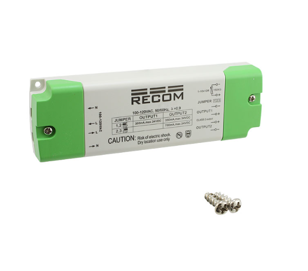 CategoryPower Supplies - External/Internal (Off-Board)LED DriversMfrRecom PowerSeriesLIGHTLINE RACD20-D (20W)PackageBoxTypeConstant CurrentTopologyAC DC ConverterNumber of Outputs2Voltage - Input (Min)90VACVoltage - Input (Max)130VACVoltage - Output3 ~ 34VCurrent - Output (Max)350mAPower (Watts)20 WVoltage - Isolation3 kVDimmingAnalogFeaturesOCP, OTP, SCPRatingsIP20Operating Temperature-20°C ~ 40°CEfficiency80%Termination StyleTerminal BlockSize / Dimension6.10" L x 1.97" W x 0.87" H (155.0mm x 50.0mm x 22.0mm)Approval AgencyCE, EN, SEMKO, ULMounting TypeChassis MountWeight0.309 lb (140.16 g)Environmental & Export ClassificationsATTRIBUTE DESCRIPTION RoHS Status ROHS3 Compliant Moisture Sensitivity Level (MSL) 1 (Unlimited) REACH Status REACH Unaffected ECCN EAR99 HTSUS 8504.40.9580 - Аксессуары и аналоги